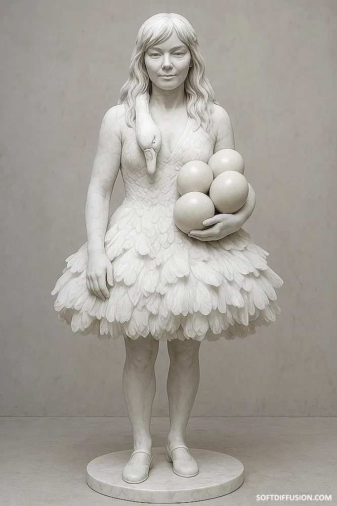 Björk 2001 Academy Awards ceremony: Macedonian designer Marjan Pejoski Swan Dress in Italian Marble