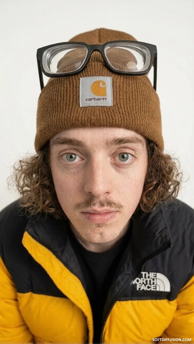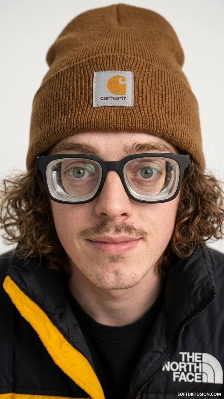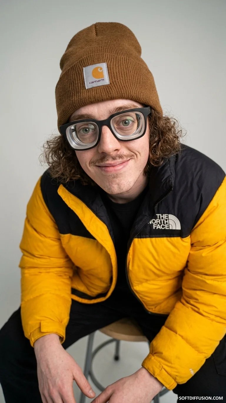 Extremely nearsighted gorpcore guy with thick glasses attempts a photoshoot 🤓