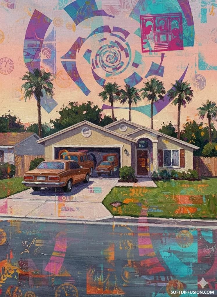 I used Gemini to 'collapse' a 1980s house prompt into a 1950s surrealist painting. picture 8 of 10