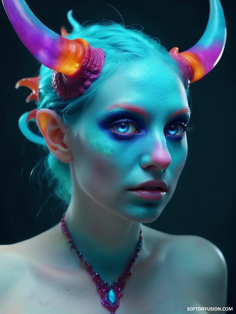 Antlered muse of blue and gold