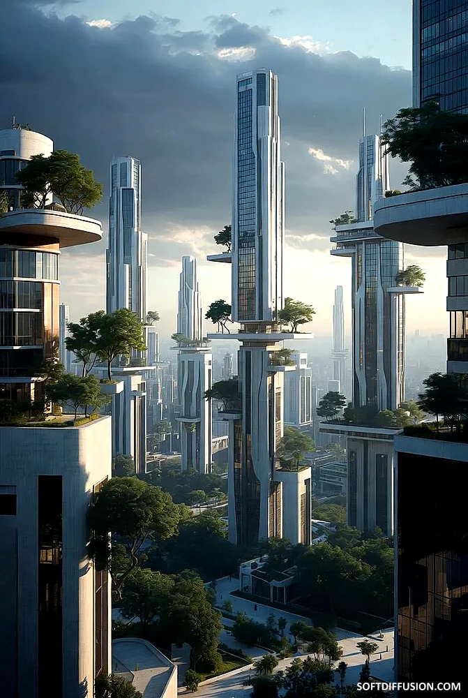 "Biomimetic megastructures where nature literally grows on top of everything"
