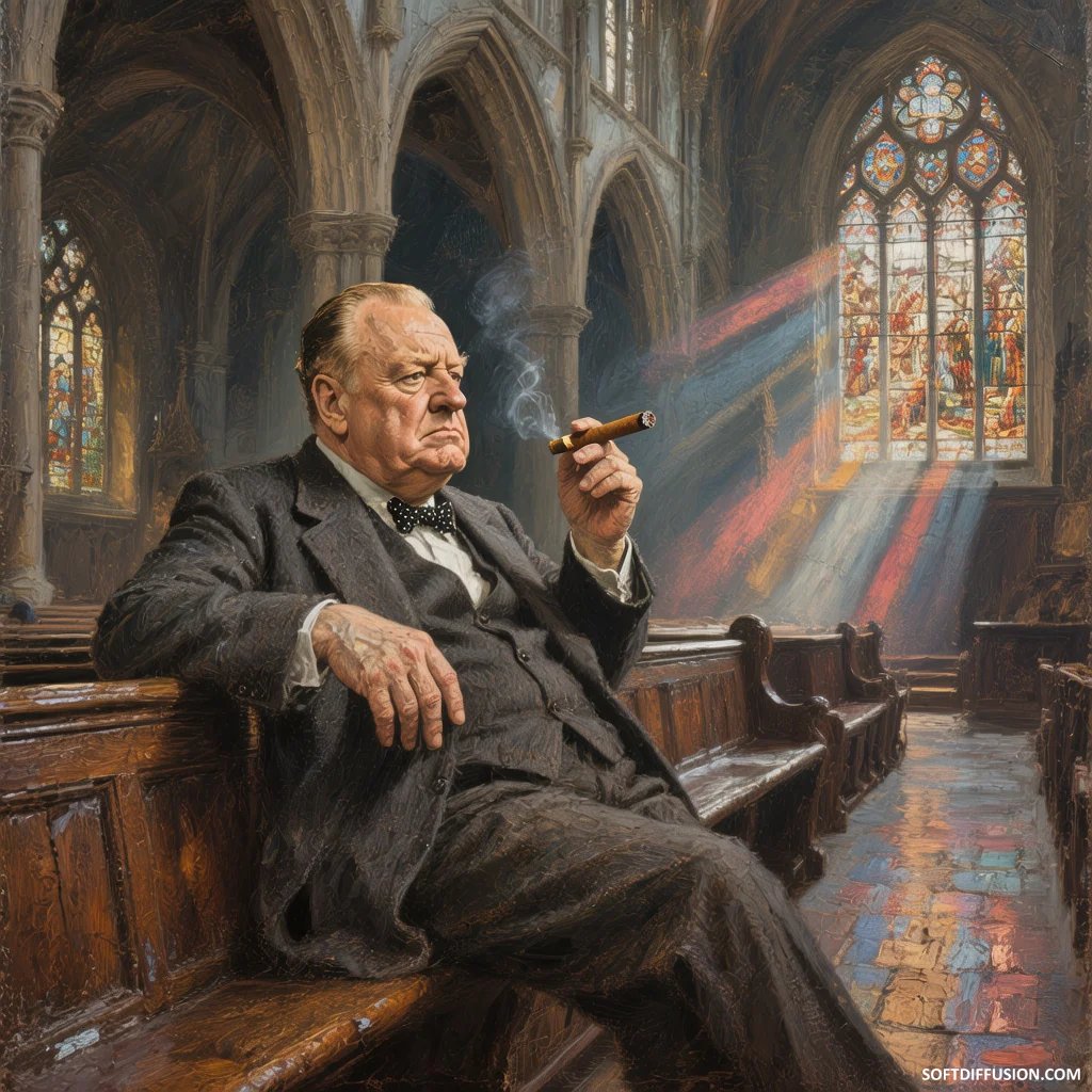 Churchill chilling in church