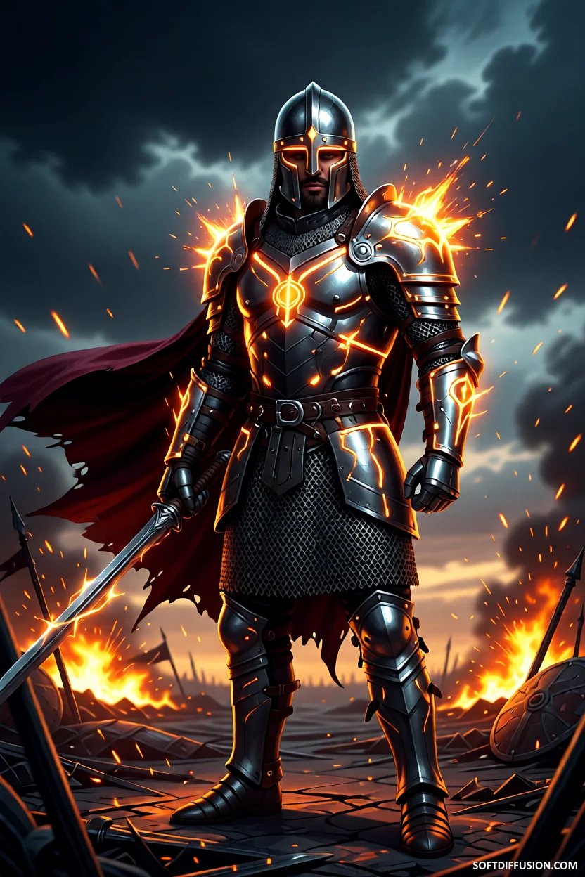 Infernal Knight, fantasy warrior concept with molten armour