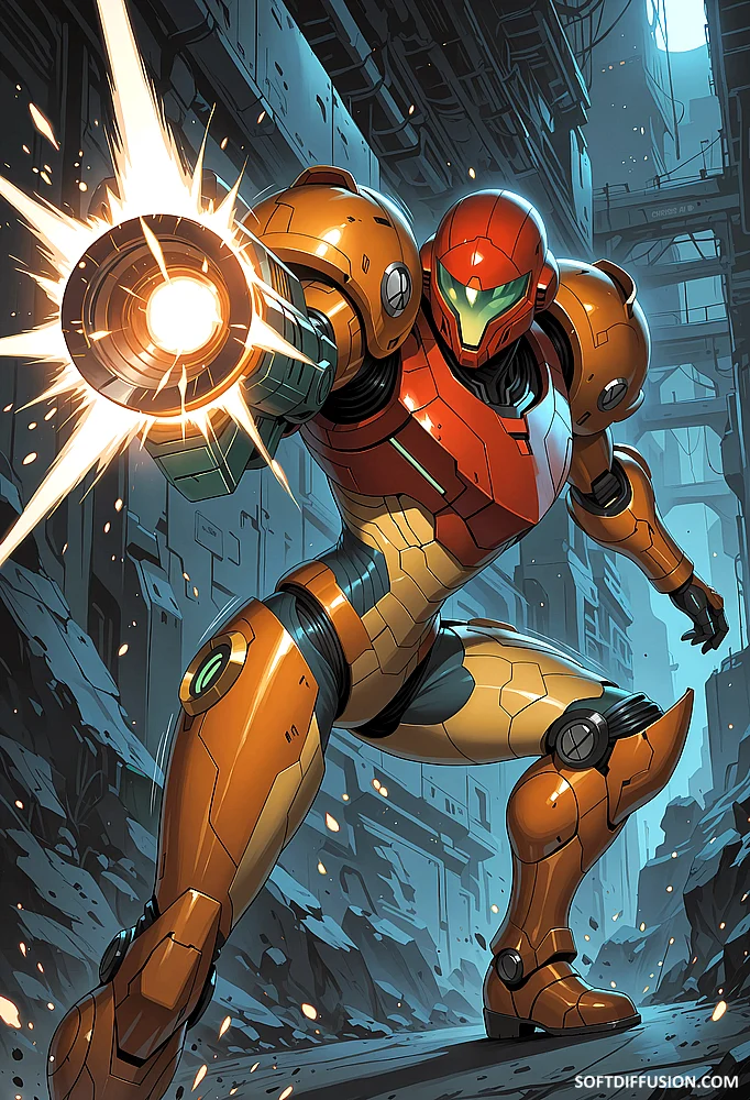 Samus Aran, having a blast (literally)