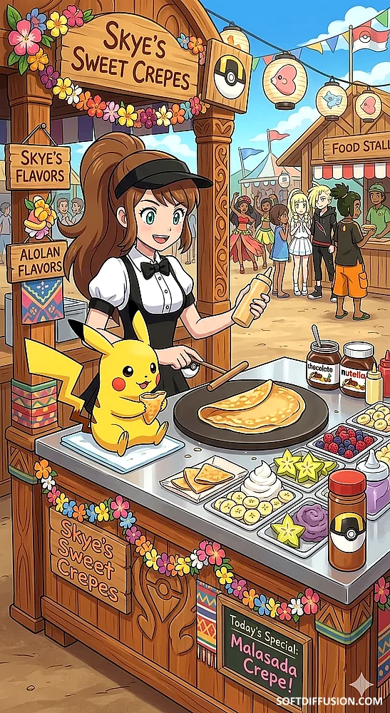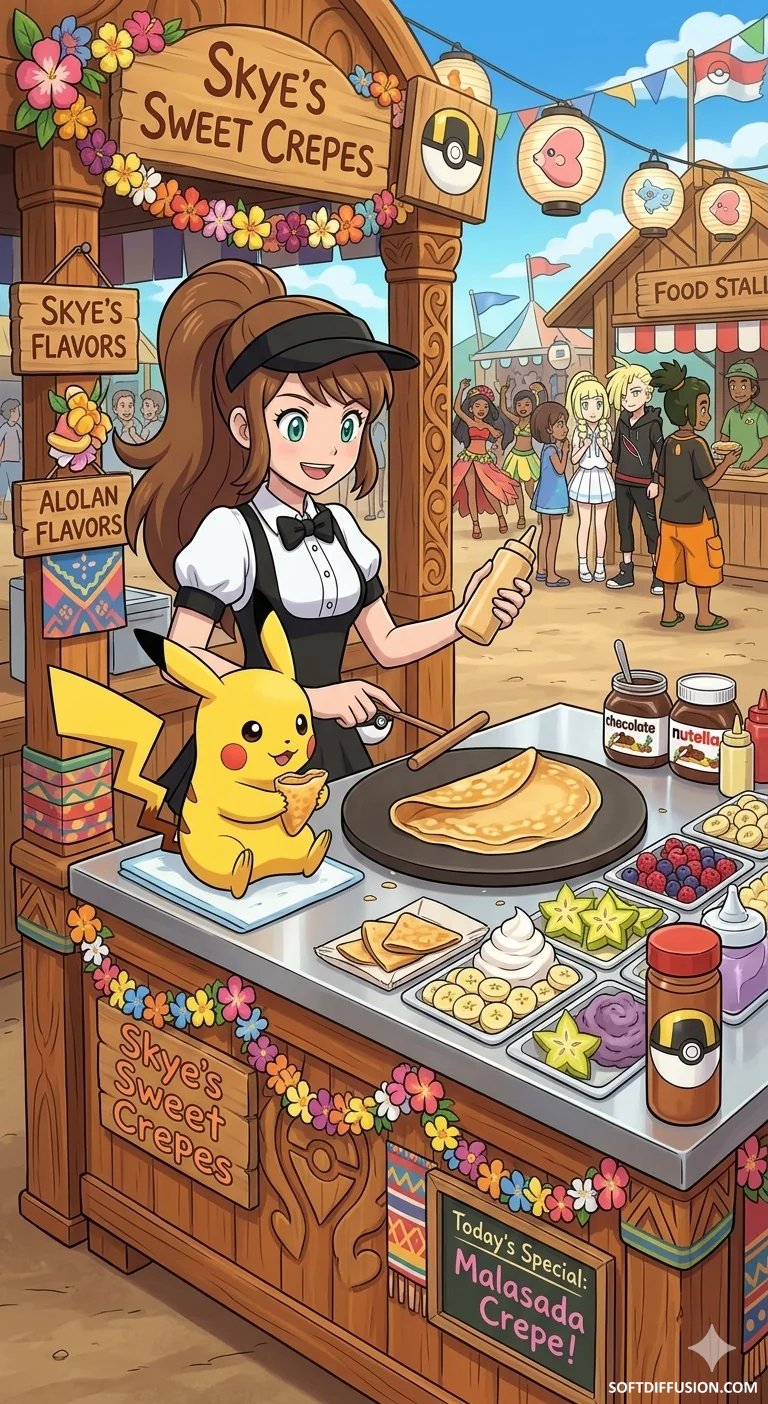 Skye working at a crepe stand at an Alolan festival picture 1 of 1