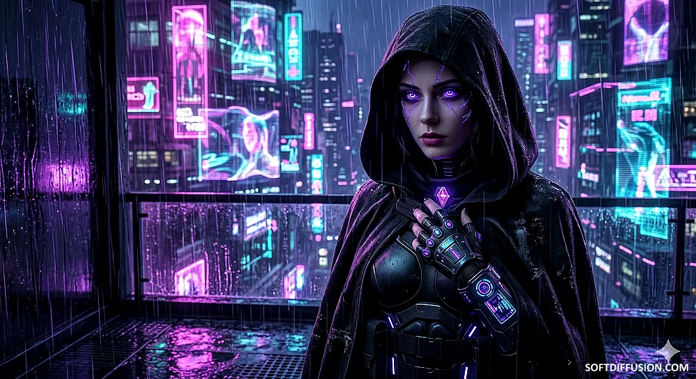 The Woman Behind the Neon Veil