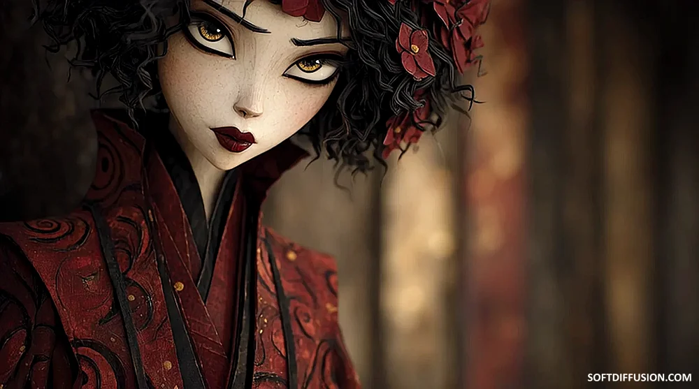 Beautiful eyes and red dressed - Midjourney Video