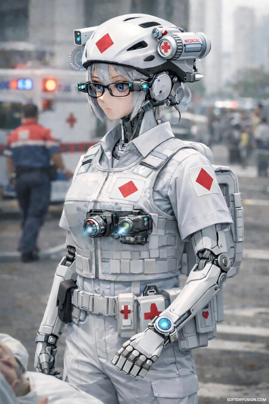 ​Daily life with advanced androids: Security and medical roles. (AI Generated) picture 4 of 4