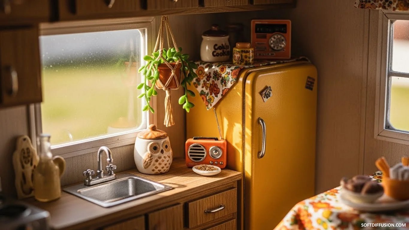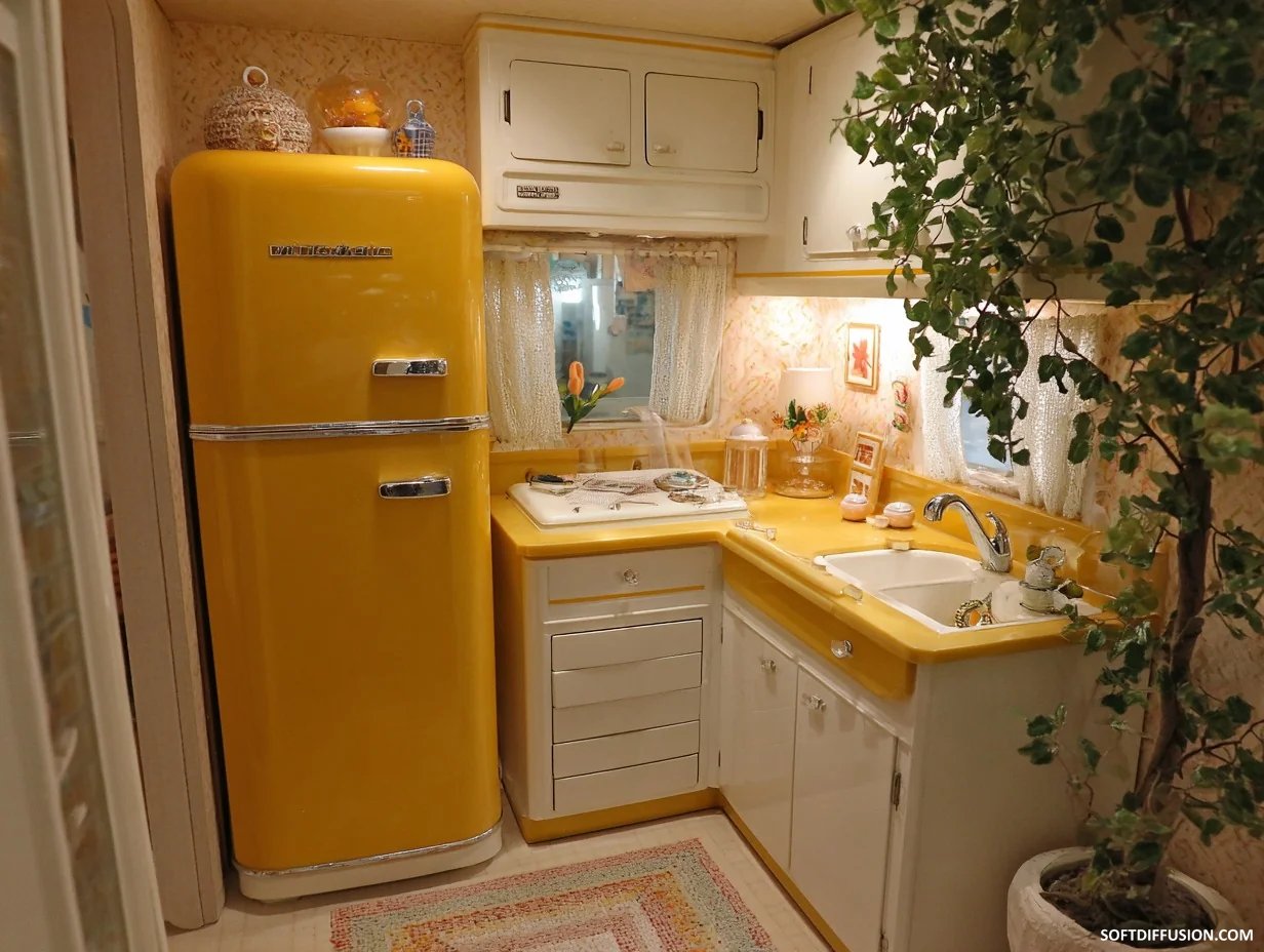 Retro tiny home interiors