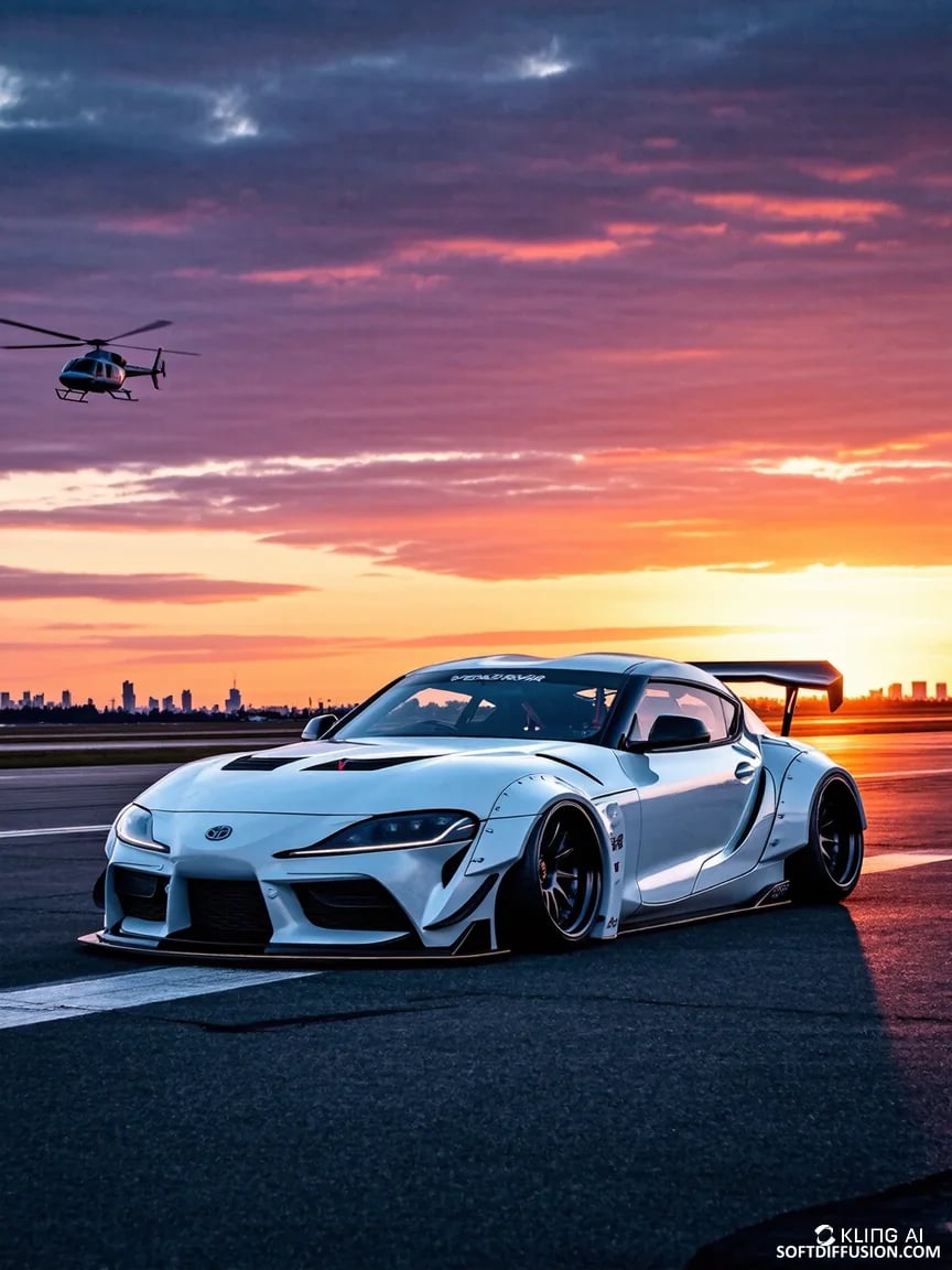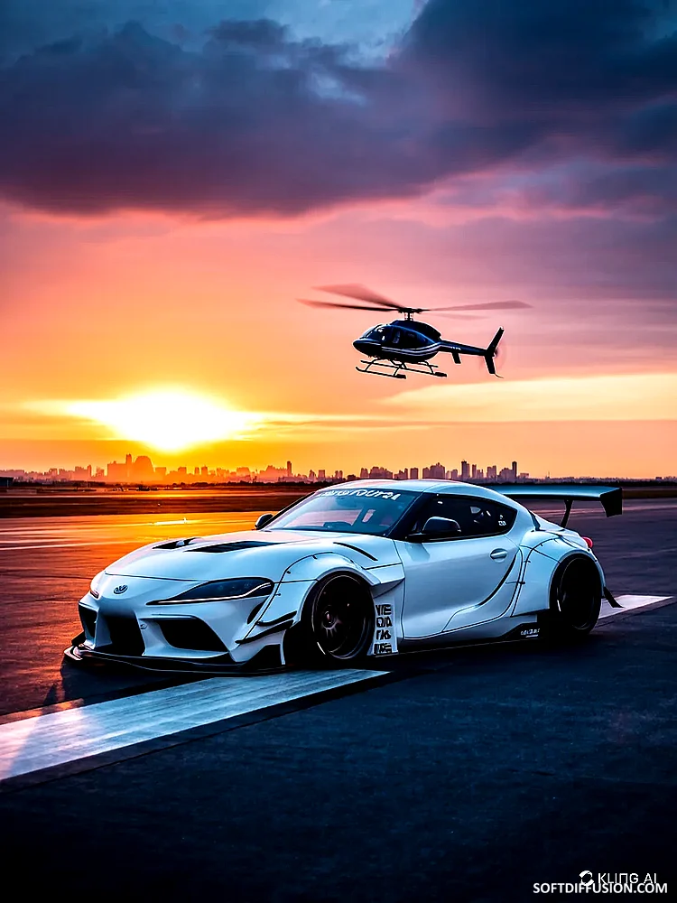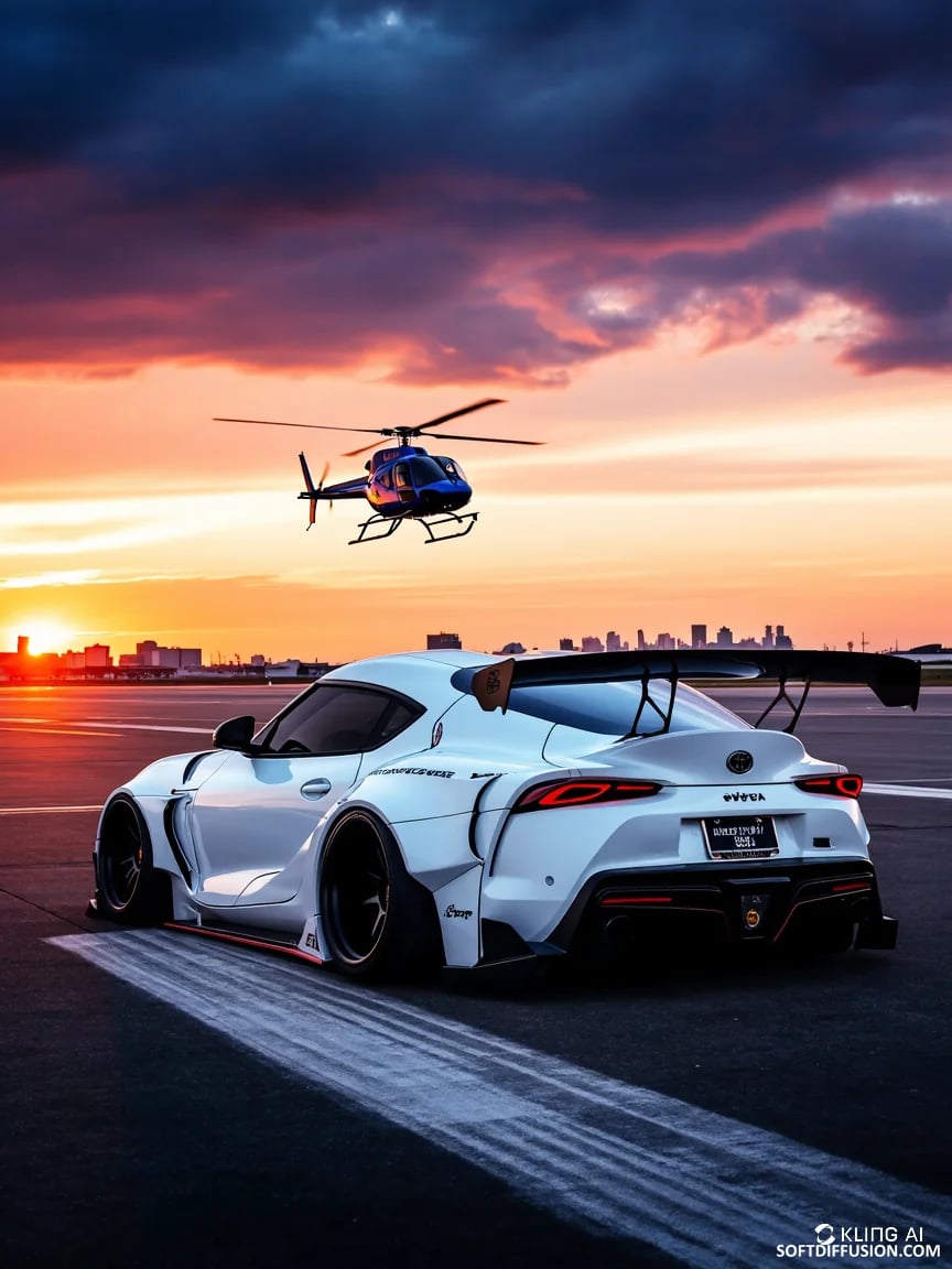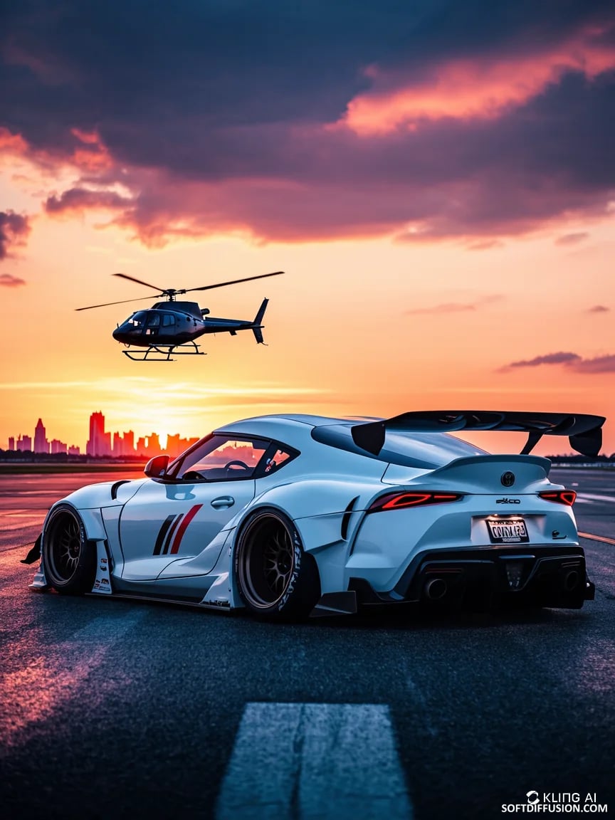 Sport Car and Helicopter