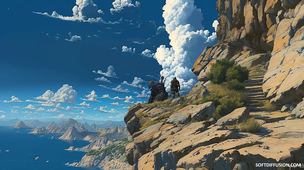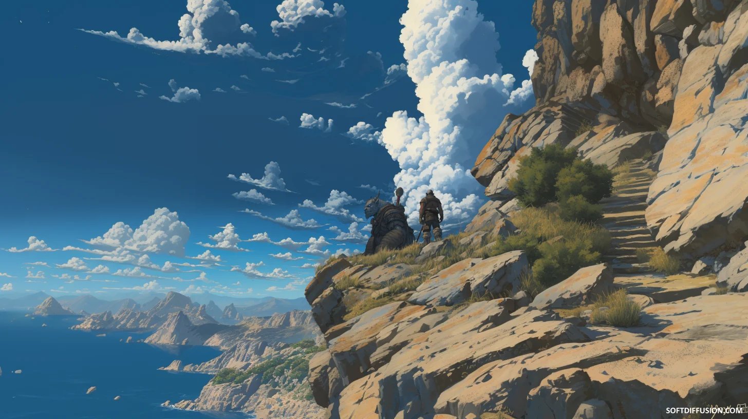 Adventurers resting in sight of the sea