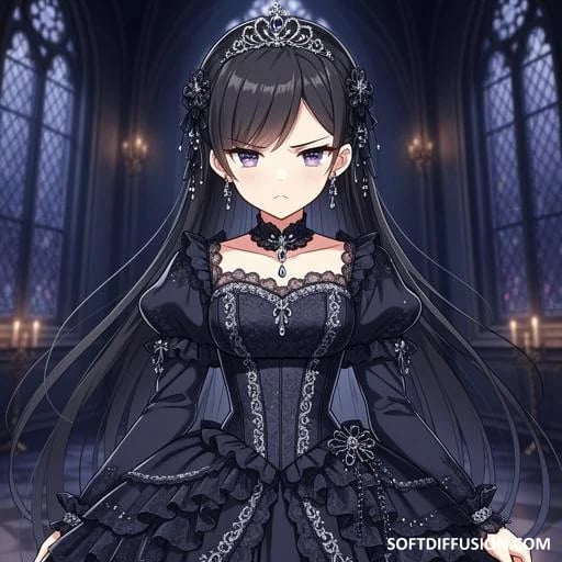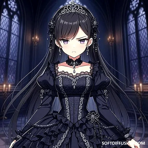 An Irritated Princess in a Fancy Black Dress