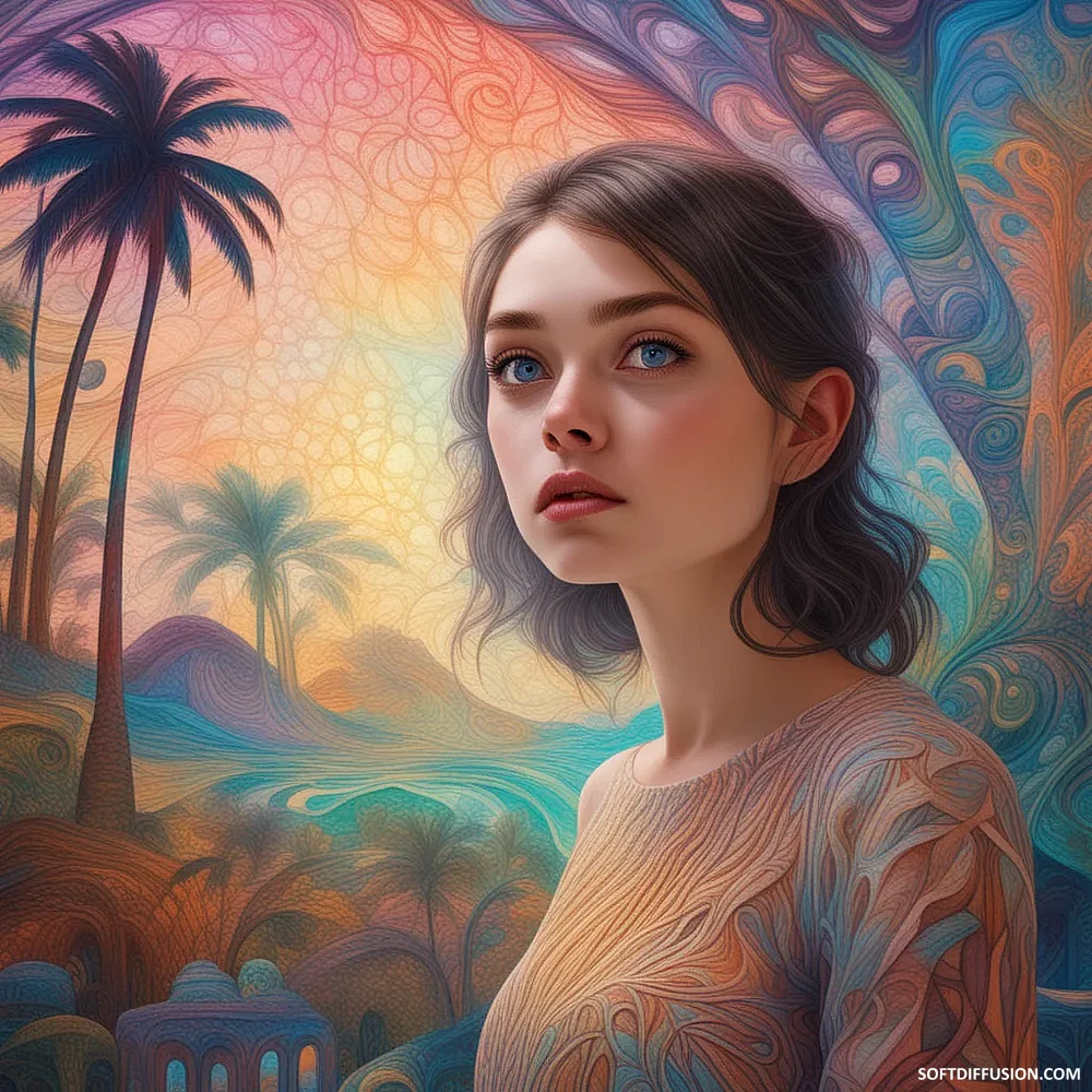 Blue Gaze Amidst Peach Petals picture 1 of 1