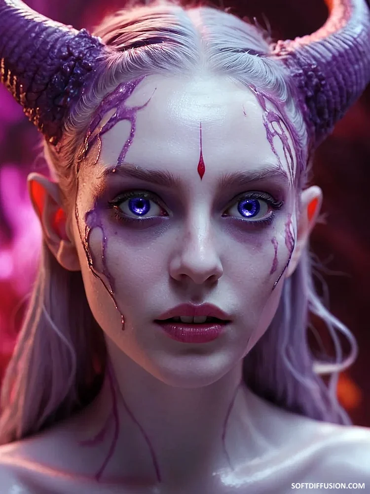 Blue horns amid crimson shadows