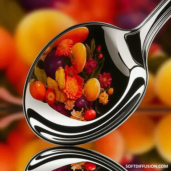 Chrome spoon, reflecting