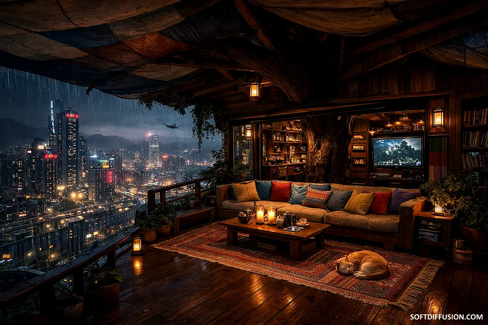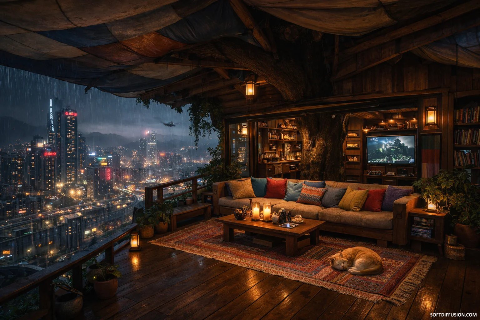 Cozy treehouse above the city