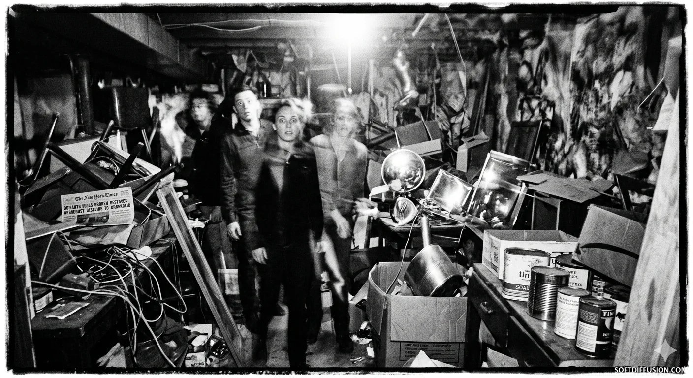 Create an image of a random scene taken with a spartus film press camera with the flash on, chaotic, uncanny - edited the current trend prompt a little picture 1 of 1