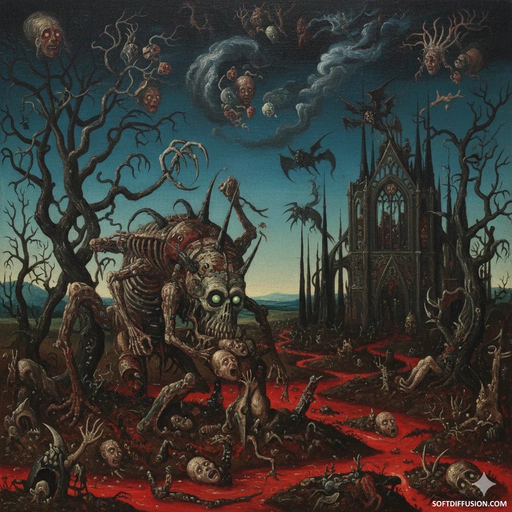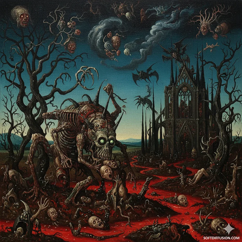 Draw me the creepiest thing you can imagine in your favorite painting style. picture 1 of 1