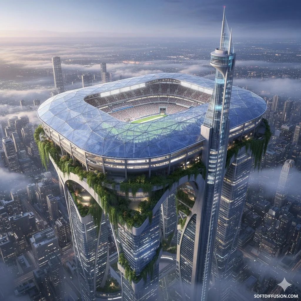 Football stadium on top of a city.