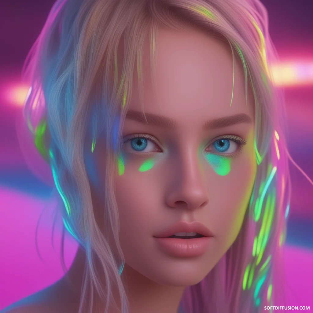 Golden hair, pixel grid, sapphire gaze