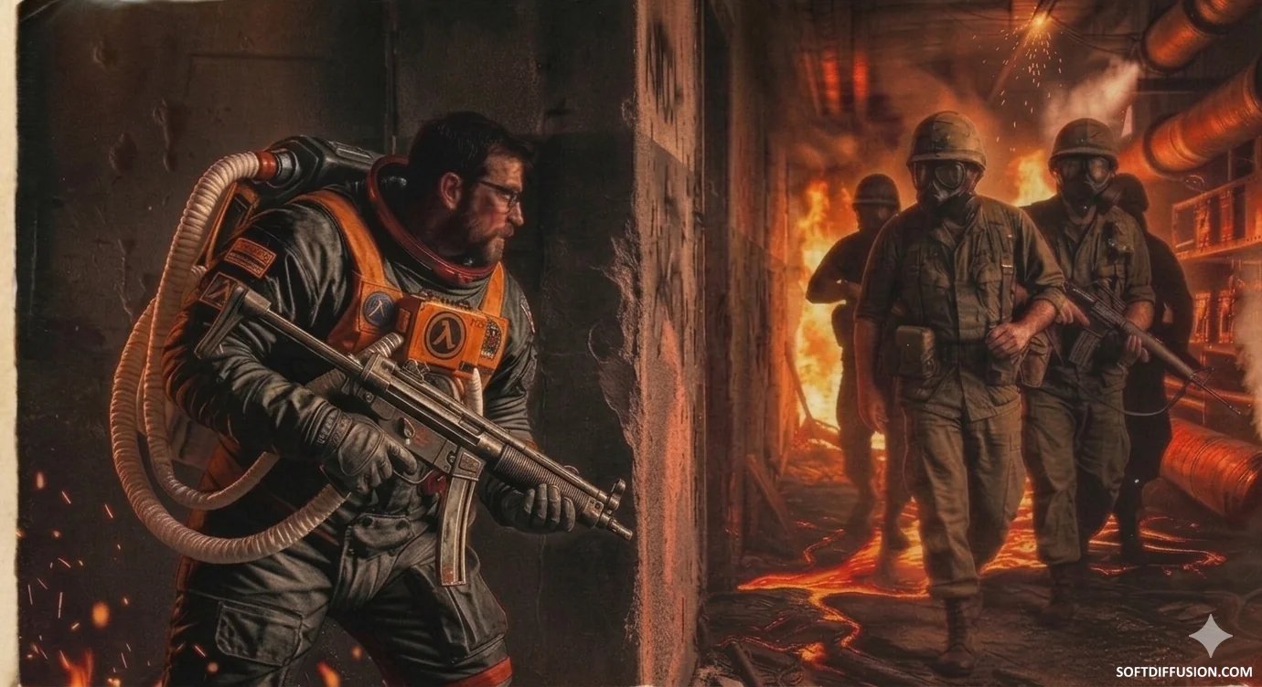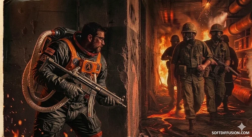Gordon prepares to ambush a HECU squad in the movie Half-Life (1979) picture 1 of 1