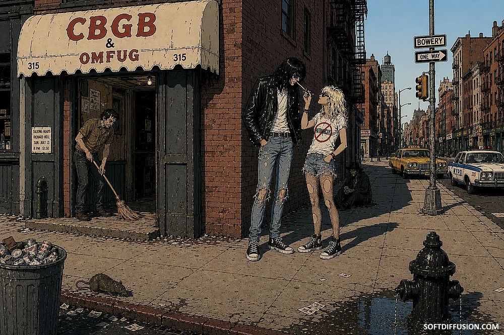 Joey Ramone and Debbie Harry share a joint in front of CBGB's - NYC, 1975