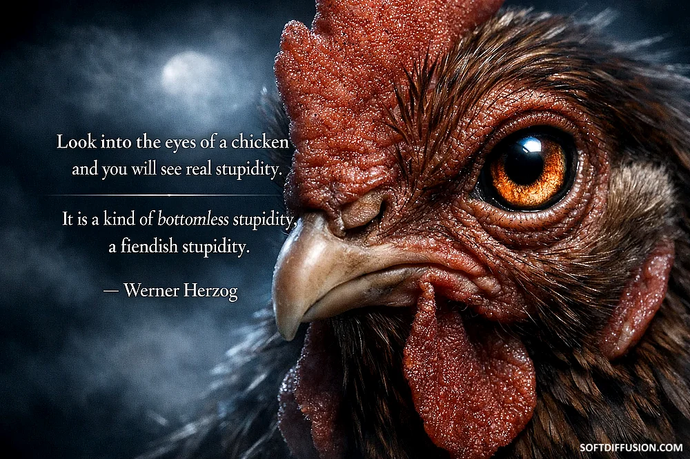 "Look into the eyes of a chicken..." Werner Herzog