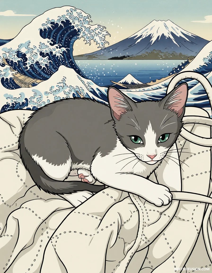 My cat Leo, when he was a kitten almost 13 years ago in Ukiyo-E inspired drawing