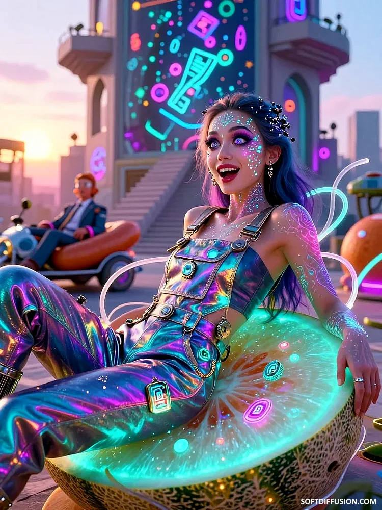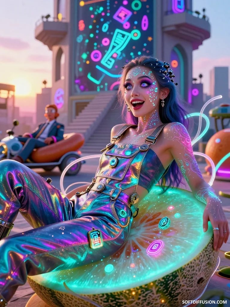 Neon moon on lemon beach