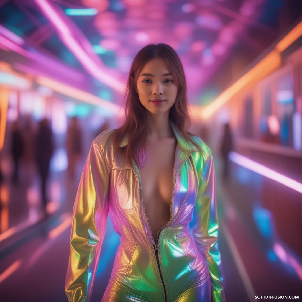 Neon Pulses Echo Her Steady Stride