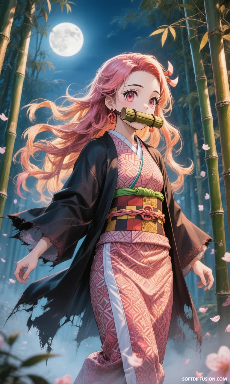 Nezuko Kamado walking under the moonlight