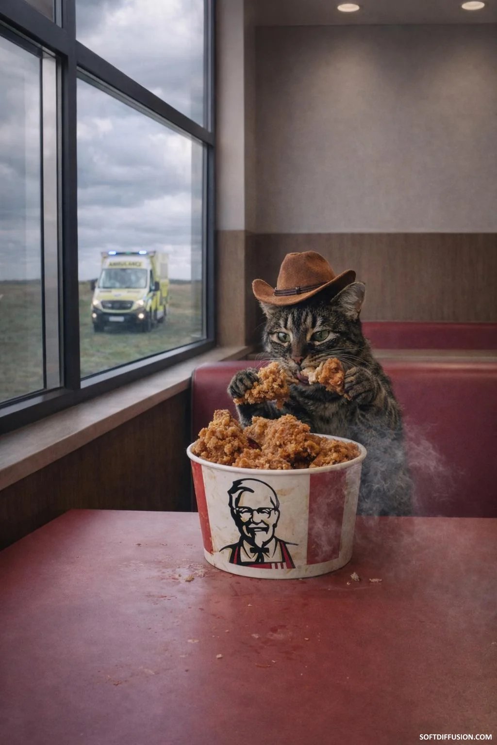 Okay so AI won me over… so much better than a puppy being saved that turned out to be a wolf. Just my cat eating KFC . Enjoy