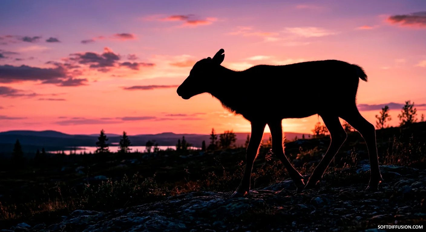 Reindeer calf at sunset
