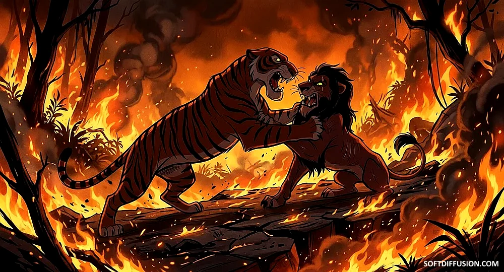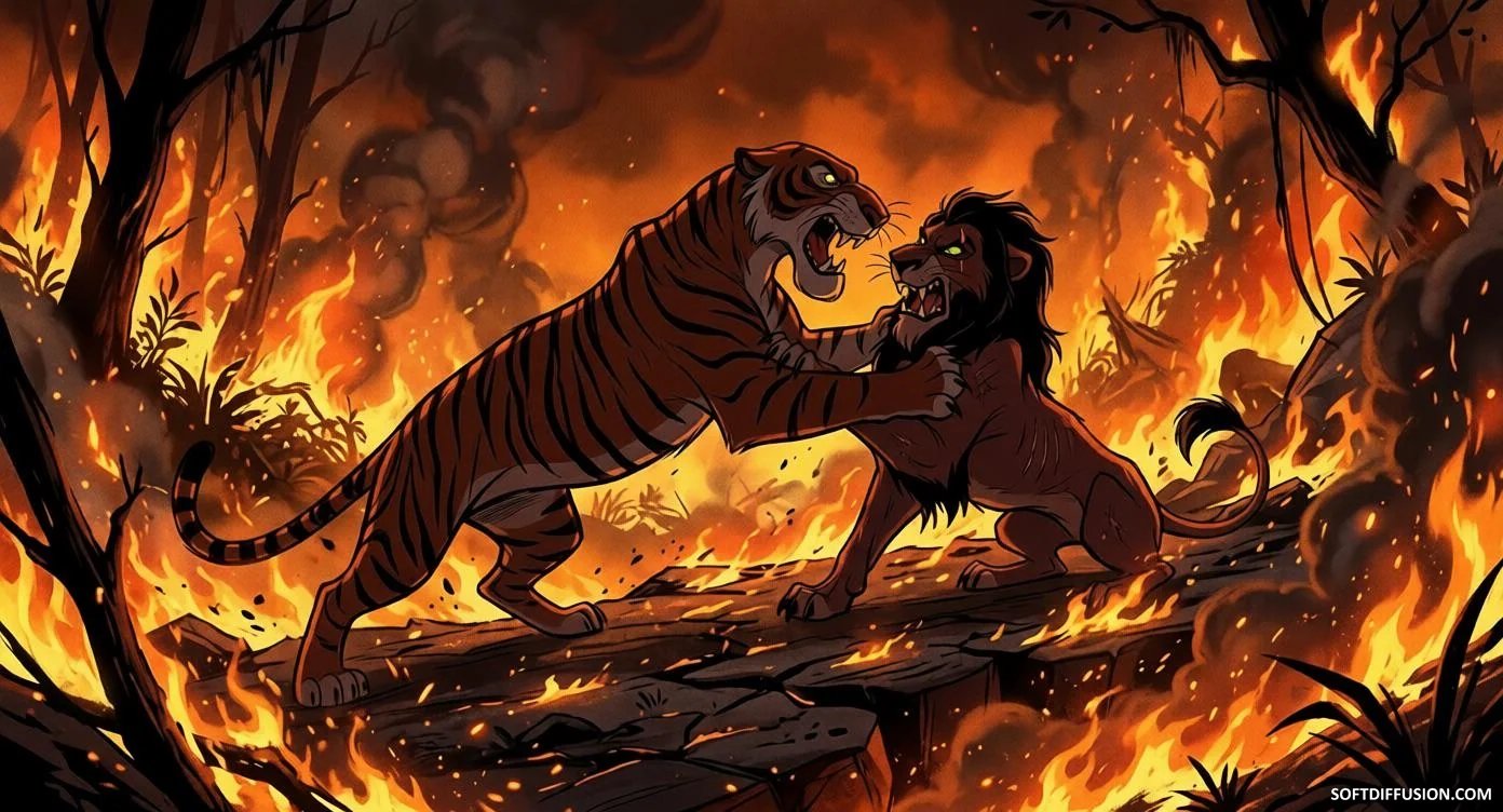 Shere Khan vs Scar - Battle in the Fiery Jungle