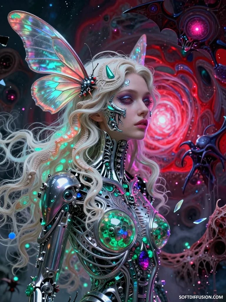 Silvery horns against the purple vortex