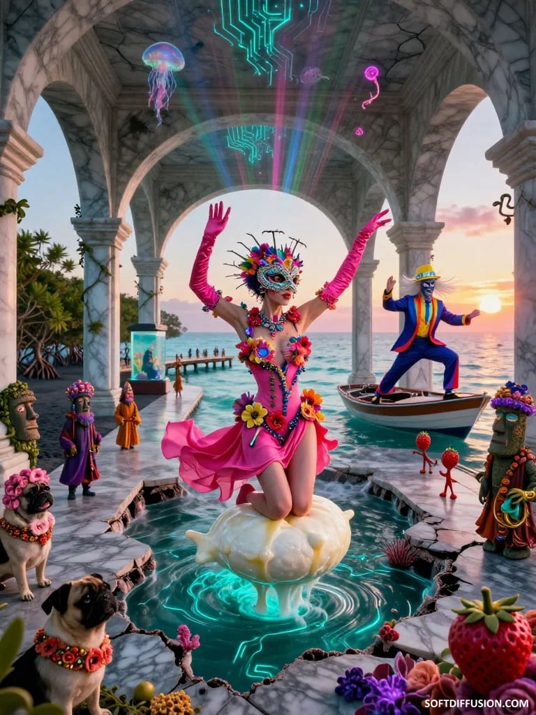 Sunset whispers, petals, and a dog