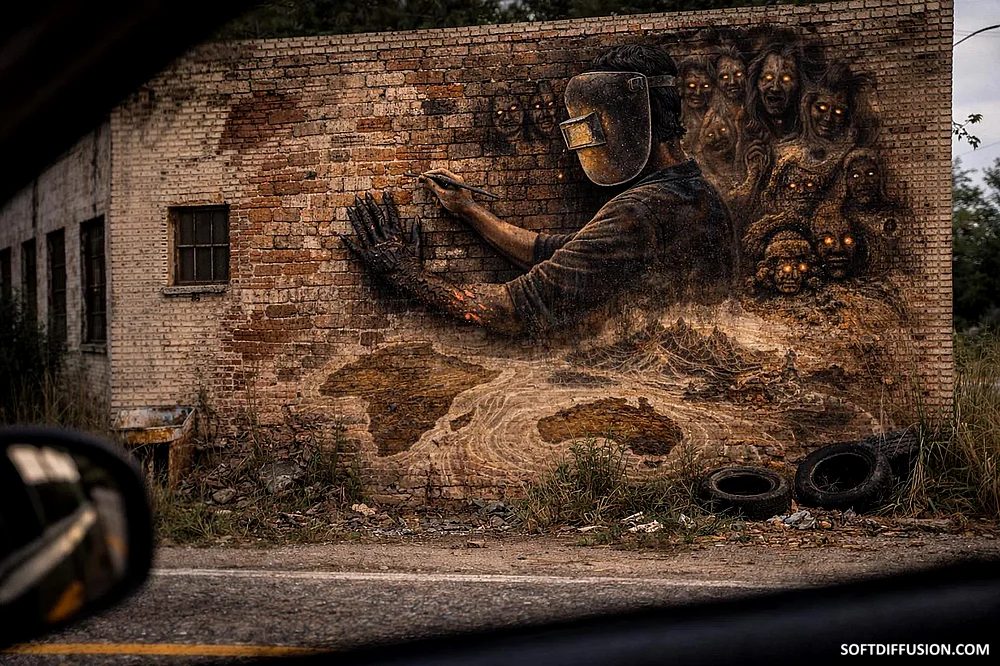 The brick that burnt the builder, ai mixed media on brick