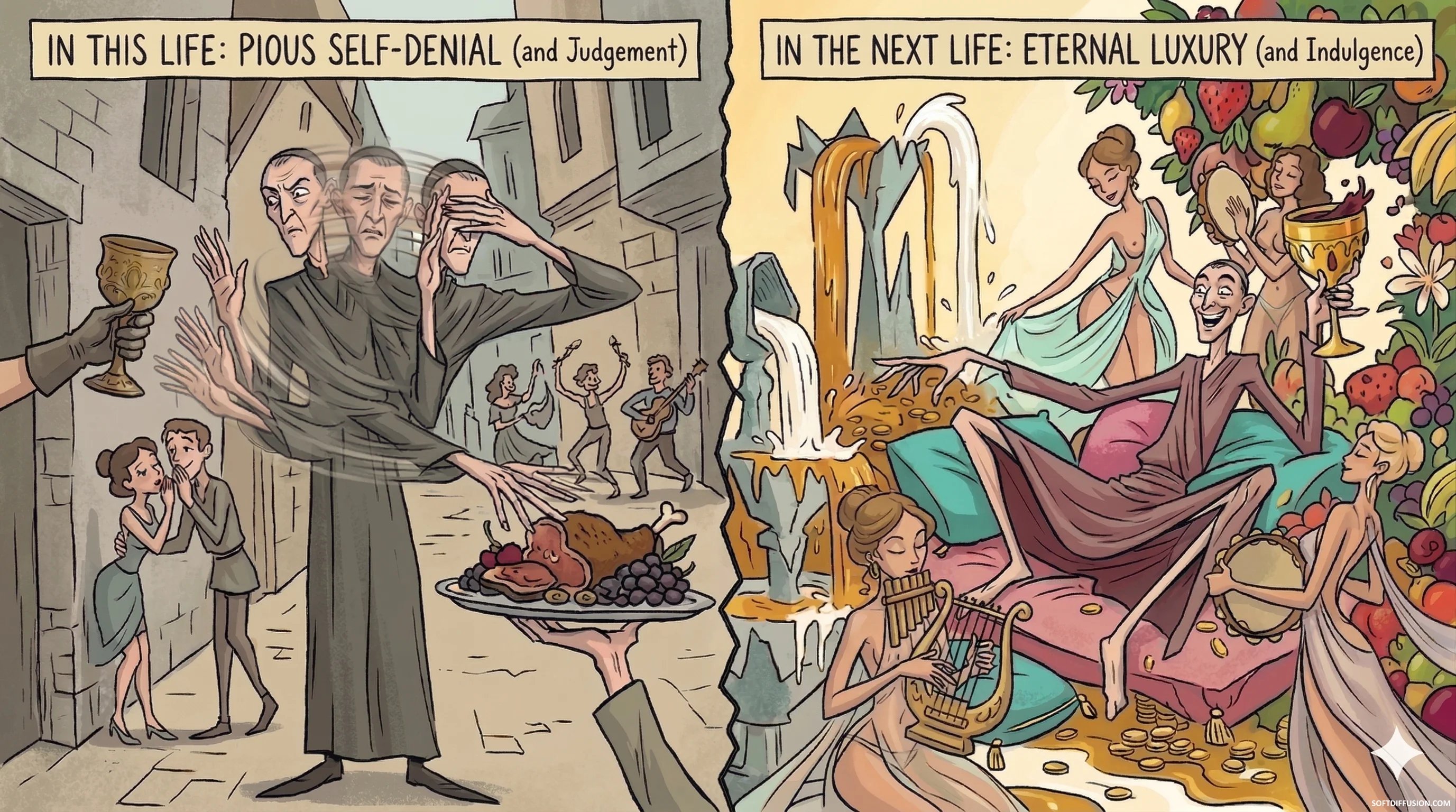 The ultra-religious are the biggest hedonists of all. Denying temporary earthly pleasure to ensure pleasure X infinity in the afterlife. picture 1 of 1