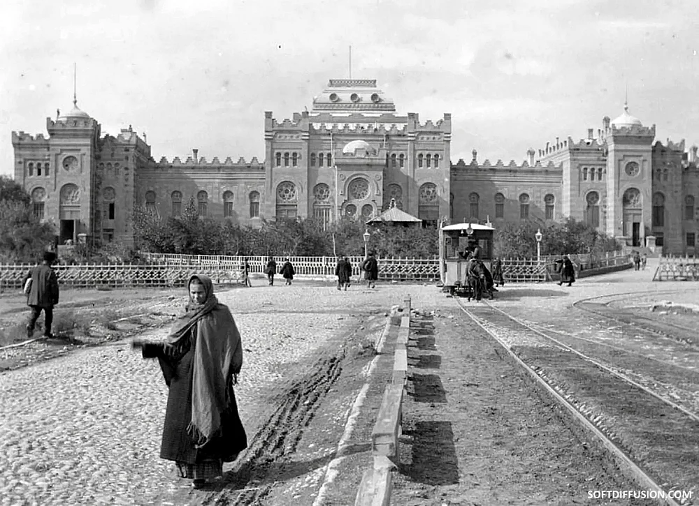 Old black-and-white archival footage of early 20th century Baku, around 1910.
